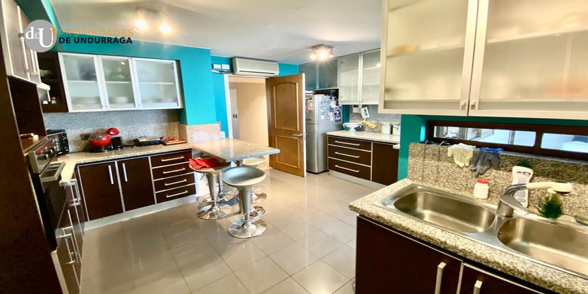 Gran cocina independiente con comedor de diario, despensa, logia y servicios completos.