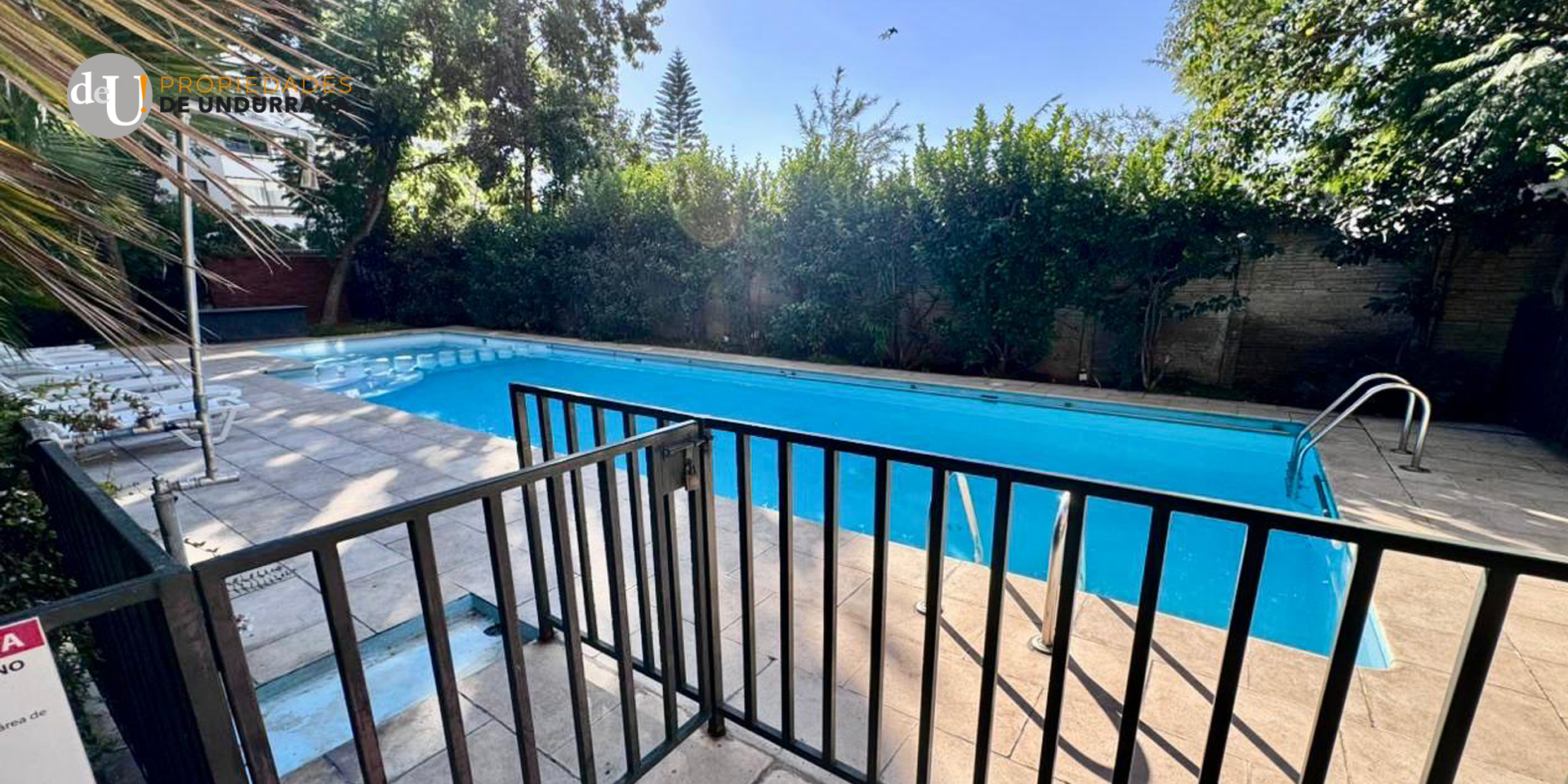Entre las áreas comunes del edificio, se encuentran una piscina exterior rodeada de